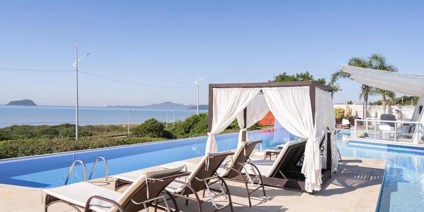 Beto Carrero, pé na areia, piscina aquecida, Bali, que tiene piscina al aire libre y salón de uso común, ofrece alojamiento bien situado en Piçarras, a 4,6 km de Univali Oceanographic Museum y a 7,3...