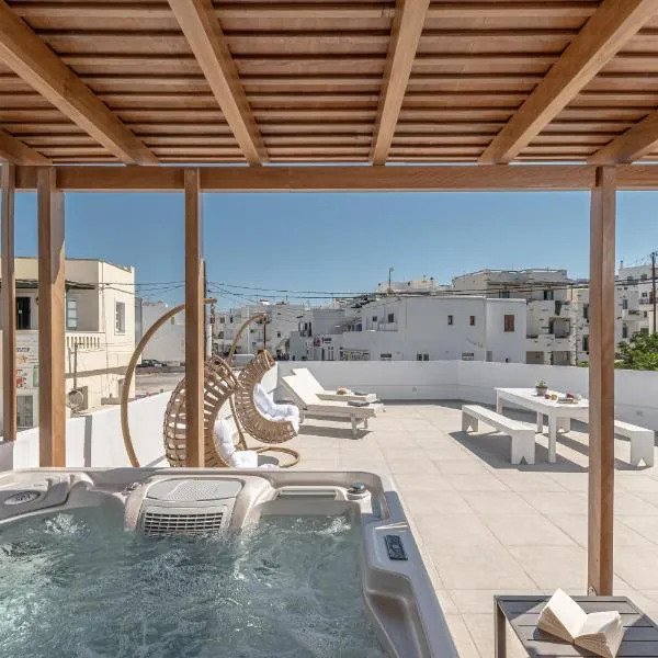 Thoe Suites Naxos - Indoor Jacuzzi está en Naxos, en la región de Cícladas, cerca de Playa de Agios Georgios y Portara, y ofrece alojamiento con acceso a la bañera de hidromasaje.