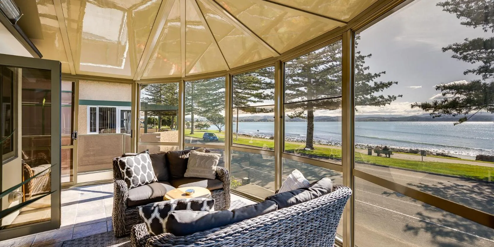 Boasting luxury accommodation with a balcony or a patio offering sea views, this beachfront property is located on Napier’s iconic Marine Parade, just a 9-minute walk from McLean Park.